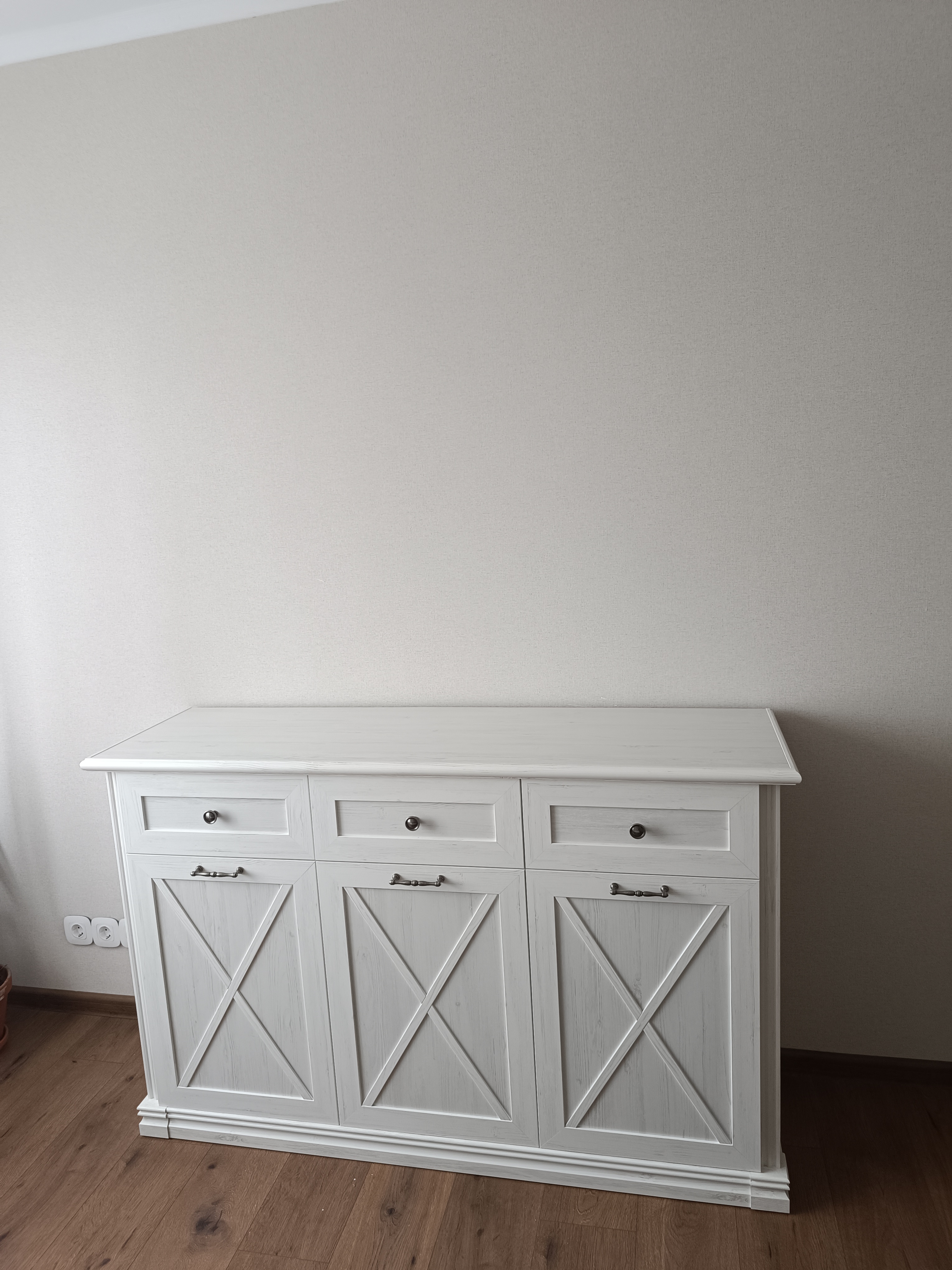 Когда муж в очередной раз споткнулся о мой "творческий беспорядок" из одежды, стало ясно - пора покупать нормальный шкаф. Но мы же не ищем легких путей - взяли сразу весь комплект. Два шкафа с вешалками выдвижными. Менеджер Наталья сразу сказала: "Берите дополнительные полки". Еще нужна тумба под телек, чтобы стиль был единый. Брали самую длинную, чтобы больше вещей уместить. И также две полка. Для книг, рамок с фото и моей коллекции котиков из фарфора. Обещали через 3 недели - привезли через месяц. Но зато сразу ВСЁ! По сборке ничего не скажу, согласовали в удобный для нас день. Хотя читала отзывы, что с этим могут быть проблемы.