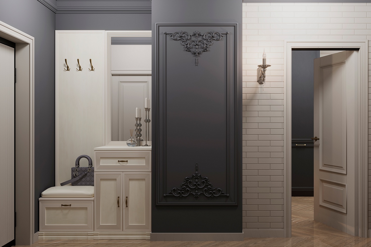 - Адажио — образец сдержанности и изящества, стиля и элегантности. Мебель из коллекции подойдет не только к классическим интерьерам, но и к прихожим в стилях фьюжн, контемпорари и эклектика;