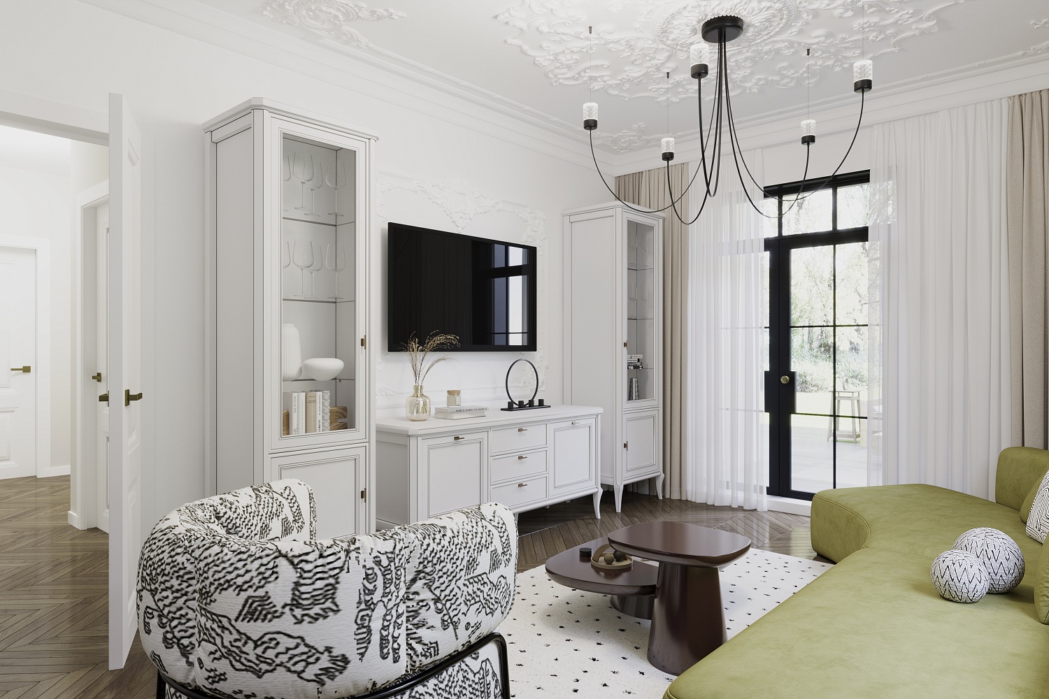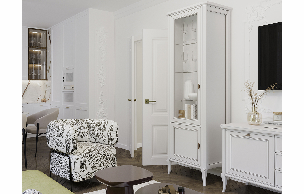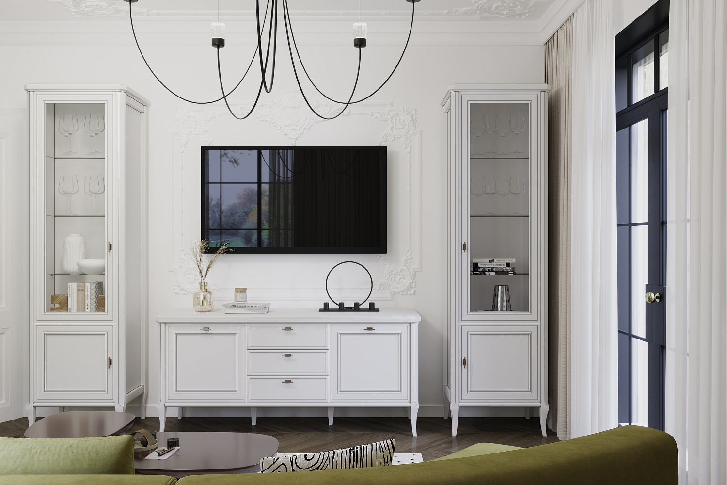 – описание: цвет бело-серый, назначение для гостиной, размер 214.8x287x50.5 см, стиль неоклассика.